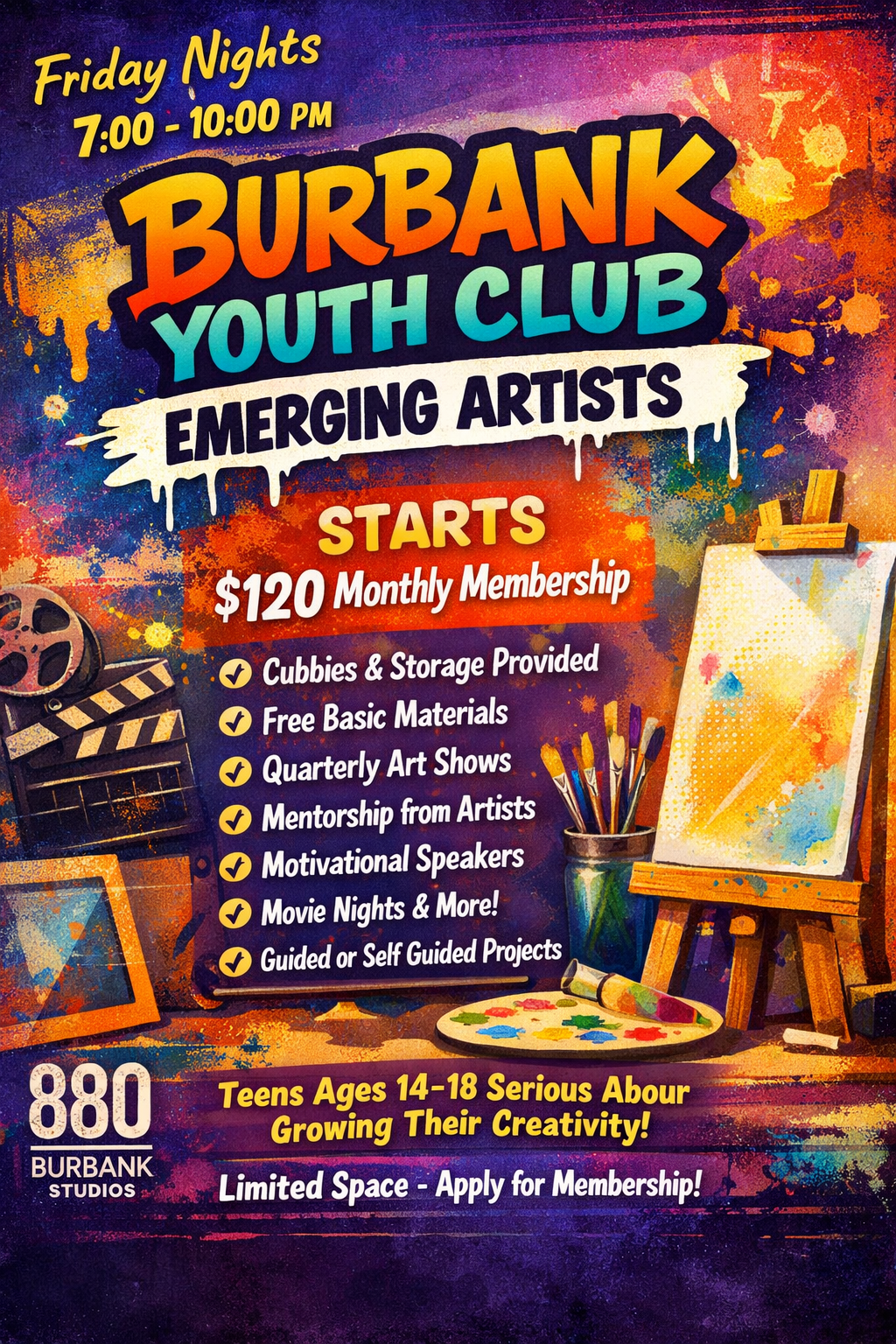 Our StoryCalling all serious young artists! Join the Burbank Youth Club and explore your creativity in a professional studio setting every Friday night. Work with peers, get expert guidance, and take your art to the next level.